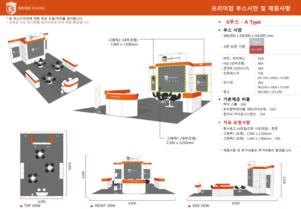 | 구분 | 6부스 A타입 | 6부스B타입 | 6부스C타입 | 6부스 D타입 (라이트부스) |